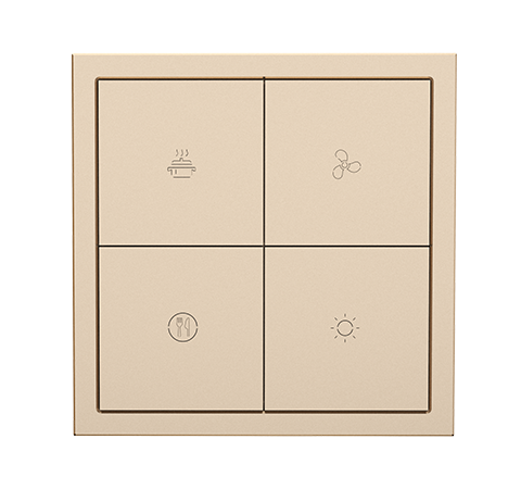 KNX Tile series Button Panel 2.0 contains 1/2/4- button panels. Icons and text of each button supports laser labelling. With built- in RGB backlight for each pushbutton, the color and brightness level can be set by ETS or manually set on the panel. The panels support controls of lighting, curtains, scenes, music, etc.