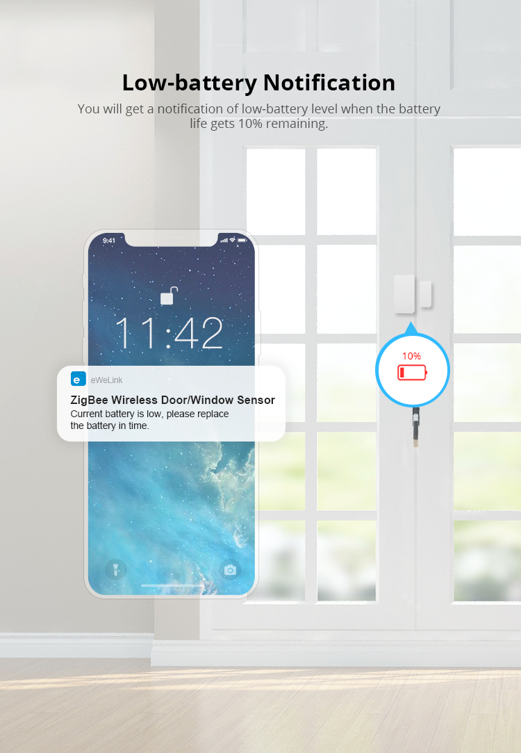 - Sync the opening & closing status of door/window on APP