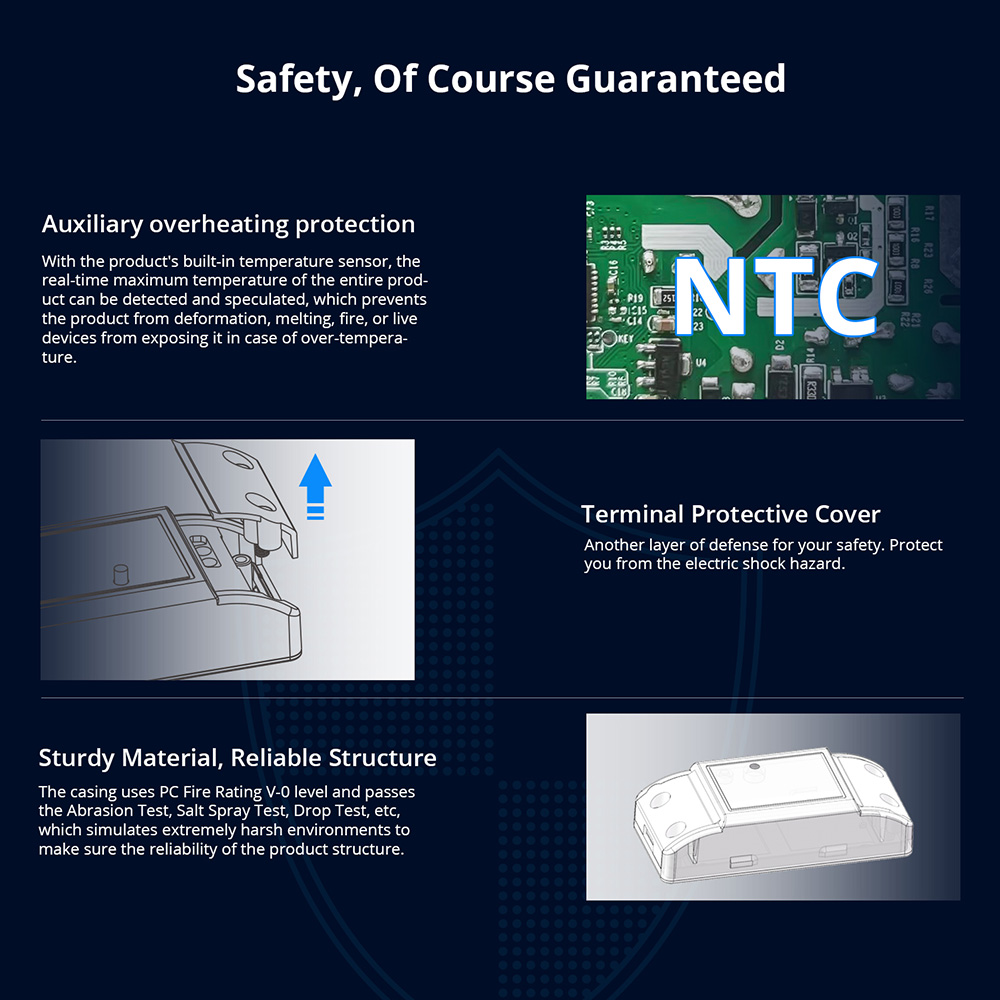 - With the product’s built-in temperature sensor, the real-time maximum temperature of the entire product can be detected and speculated, which prevents the product from deformation, melting, fire, or live devices from exposure in case of over-temperature. The BASICR4 not only has CE, FCC, etc basic certifications but also passed the more authoritative ETL certification.