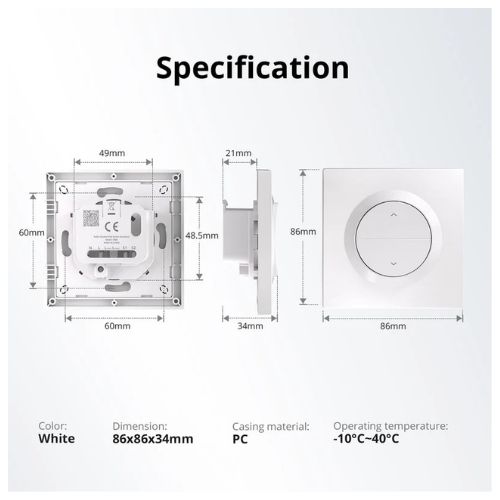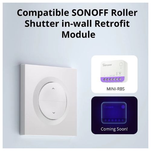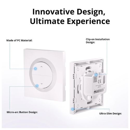 Roller Shutter Wall Switch Enclosure(ERBS) is an accessory designed for MINI-RBS, made of high-quality PC material. ERBS is fireproof, scratch-resistant, and durable without deformation over time. Its clip-on installation design simplifies wiring and improves the user experience. The micro-arc button design aligns with the natural pressing angle, offering precise and effortless tactile feedback. With an ultra-slim 21mm profile, it fits perfectly in standard EU round wall boxes, combining functionality with a sleek, modern appearance.