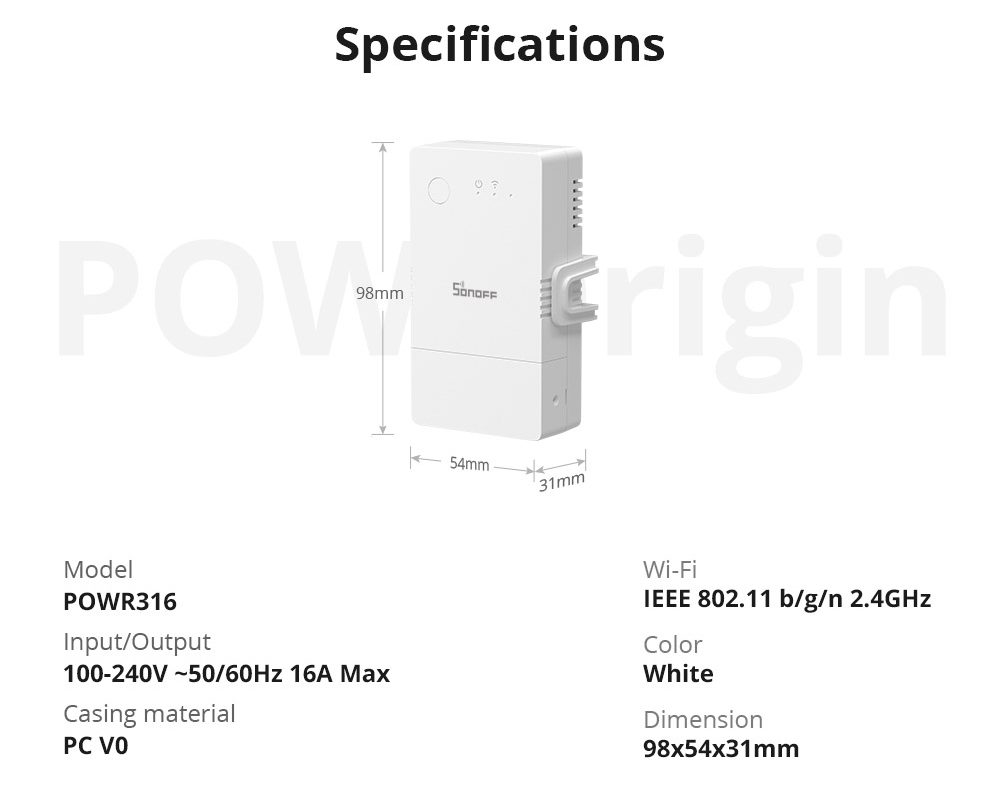 Sonoff WiFi Smart Switch POW Origin Smart Power Meter POWR3 16A