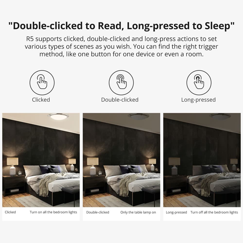 【Multi Trigger Ways】Trigger the smart scene by clicking, double click, or long-press. Up to 18 trigger actions to set different scenes.