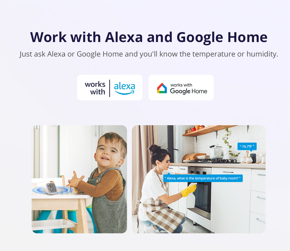 - Use large LCD display to view the real-time values of temperature humidity clearly and dynamically, the intuitive display icons let you check the room conditions and battery status even easier than ever